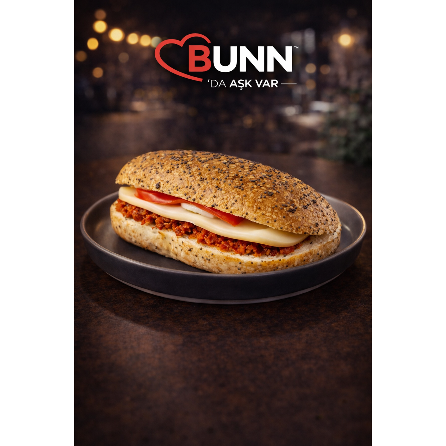 Panini Susamlı Çörek Otlu Ekmeği, Ajvar Sos, Kuru Domates, Hindi Füme, Tost Peyniri, İsli Çerkez Peyniri, Közlenmiş Kapya Biber.