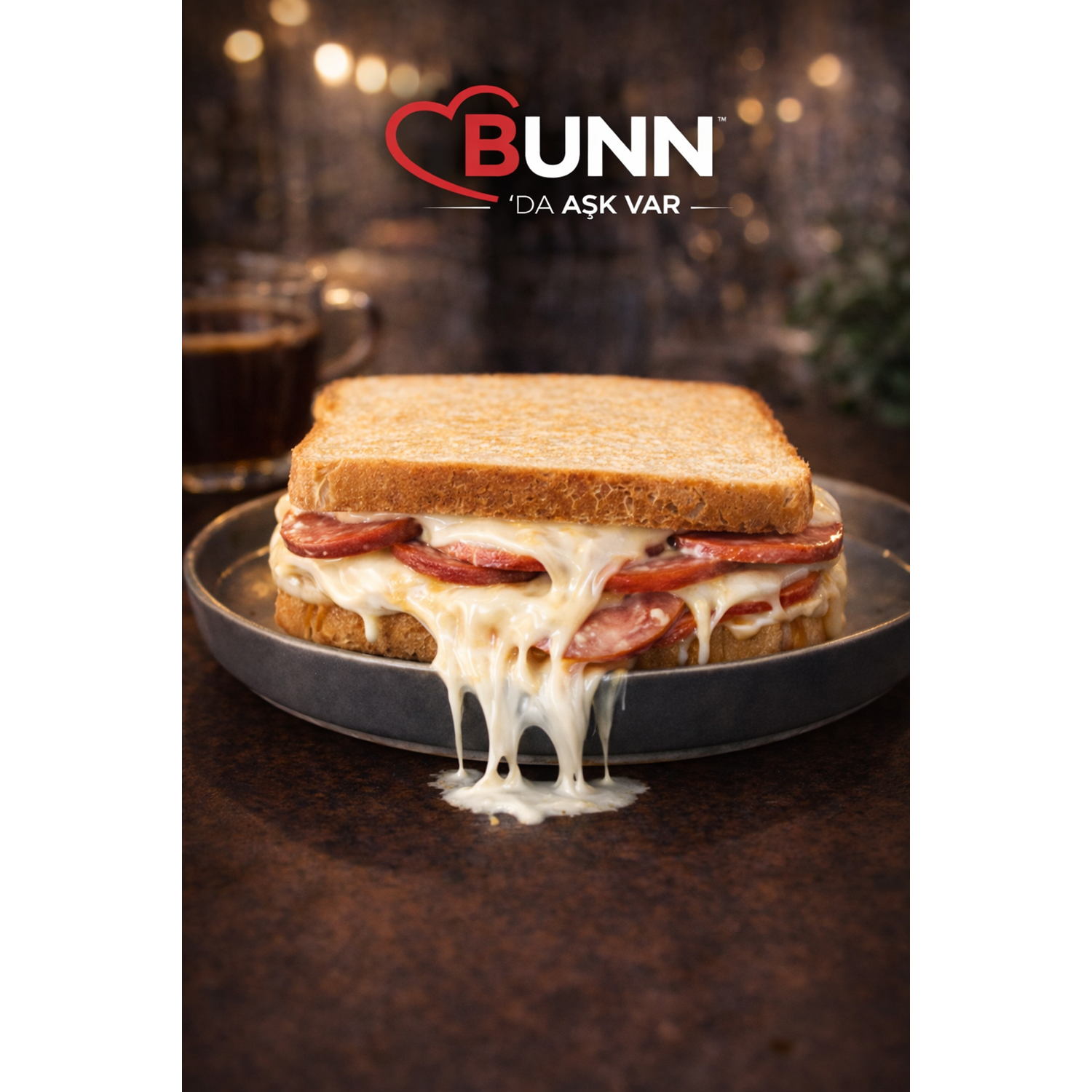 Bol peynirli ve dana sucuklu, jumbo tost ekmeği ile hazırlanmış gurme dondurulmuş tost.
